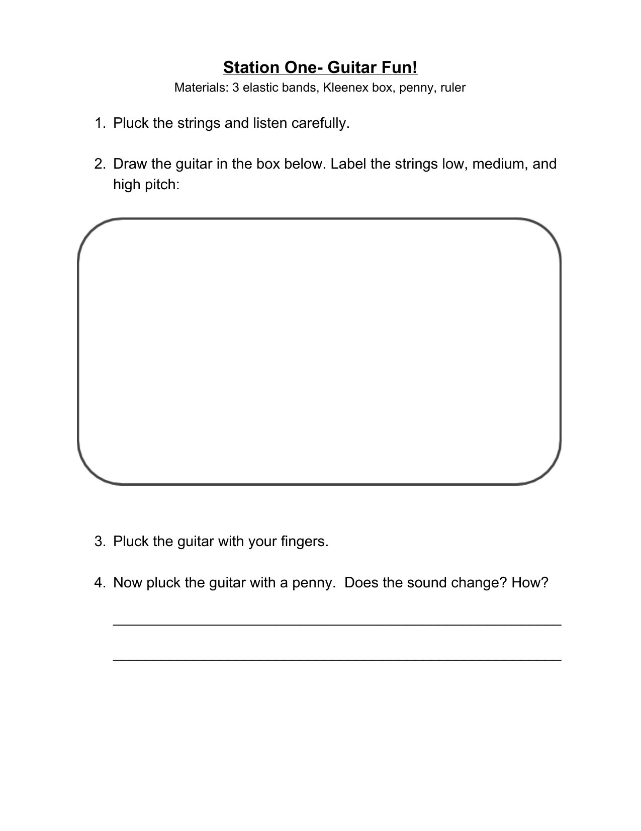 A booklet to accompany four instrument stations where the students explore how sound is made.