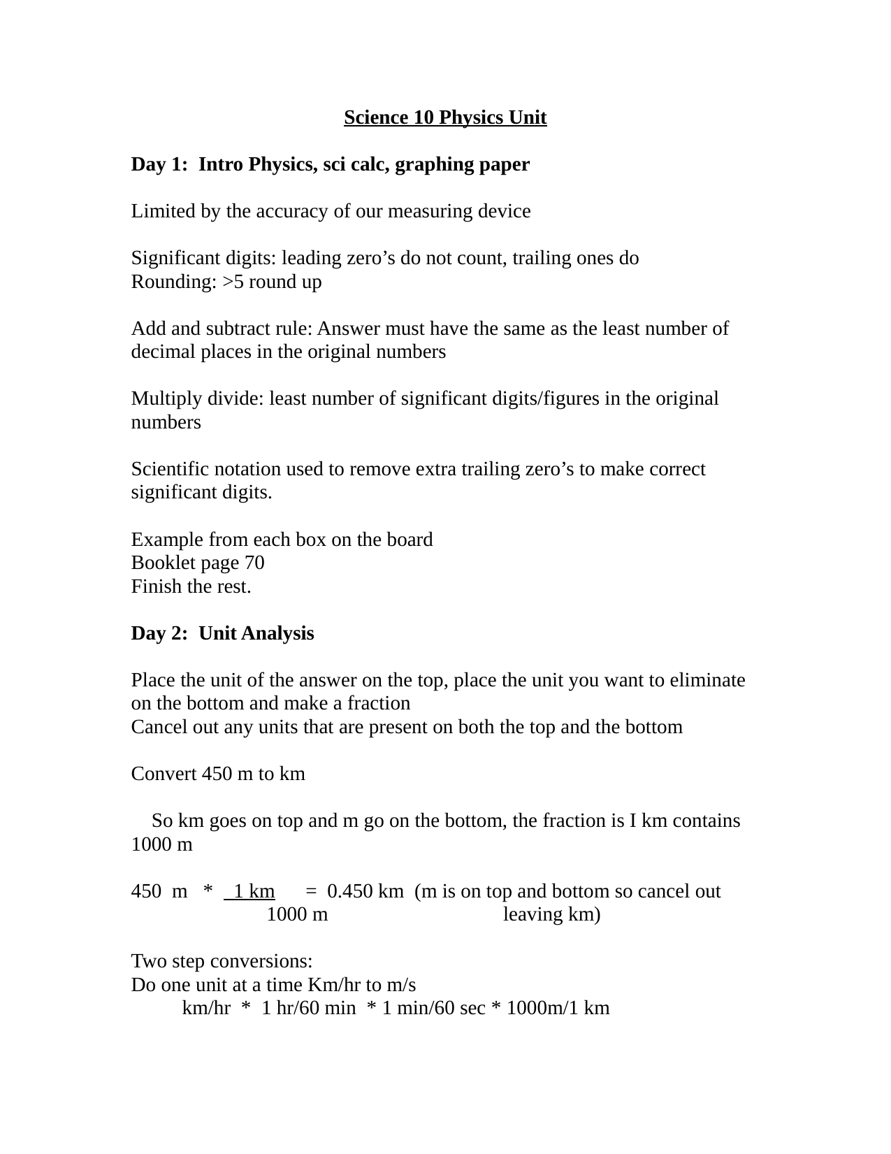 Physics 10 Unit Plan